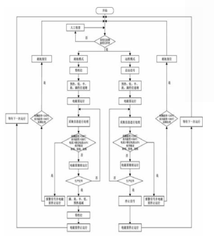 就地模式下,控制柜只接收柜門操作面板上的信號,并反饋給DCS故障信號。根據就地操作指令信號,按順序操作,接收到啟動信號時,反饋給DCS啟動信號,然后依次執行預熱、低、半、高、滿五檔工作模式,與此同時,控制柜采集電壓、電流、溫度和相序信號,并進行判斷,如果出現故障現象則報警,故障信號反饋給DCS,且將控制柜輸出切斷,然后等待人工檢查。故障消失后,等待人工給出就地復位信號,進入等待模式重新開始。如果沒有出現故障現象,則持續工作到生產完畢,則持續工作到生產完畢,然后等待就地操作的信號,依次執行滿、高、半、低、預熱和停止,最后進入等待模式,等待下一次的運行。